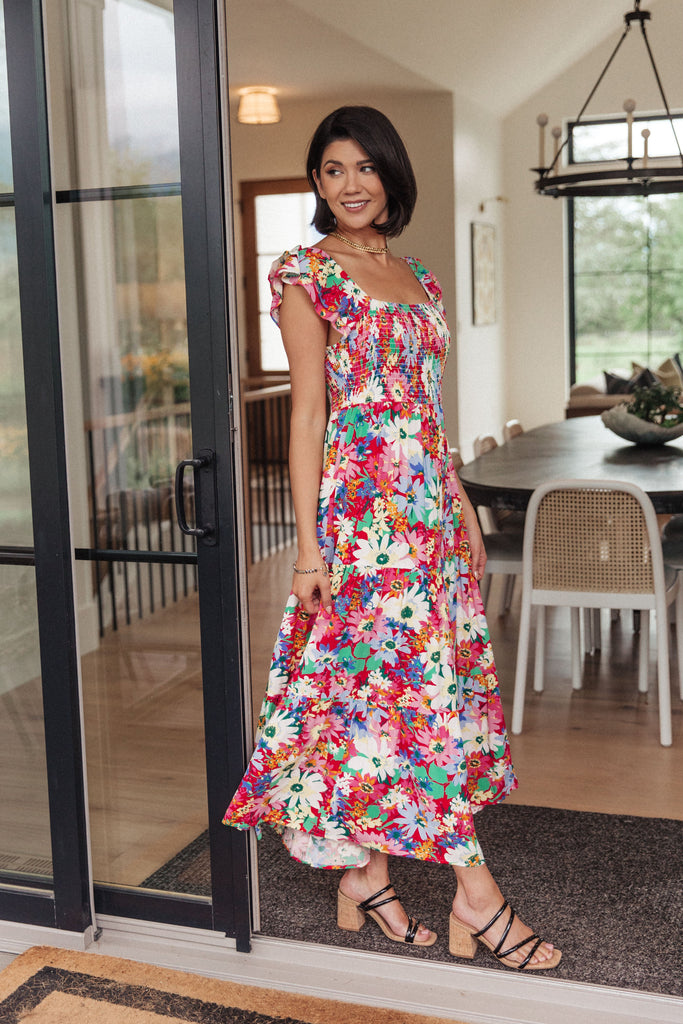 The Walk in the Flowers Maxi Dress is the ultimate must-have. With its flattering ruffle detail, smocked chest, and tiered skirt, it's perfect for making a statement. Step out in style and let your beauty blossom!